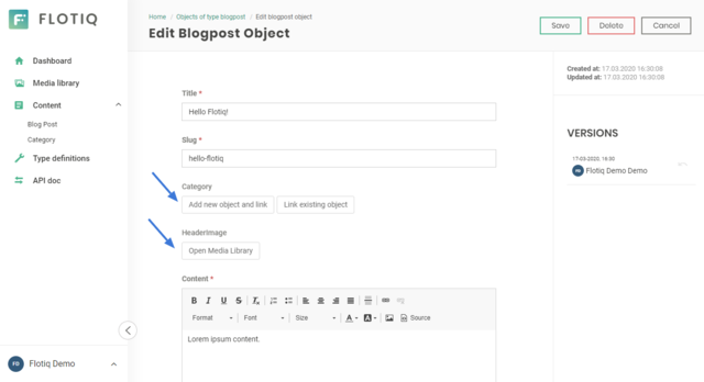 Ok, this is a mouthful! We often find ourselves working on a blogpost in Flotiq and we're too lazy to save the post, go back to the media library, upload a file, go back to the post and set it as a header image. It's so much more convenient now, once all connected content types are available for edit within the form.