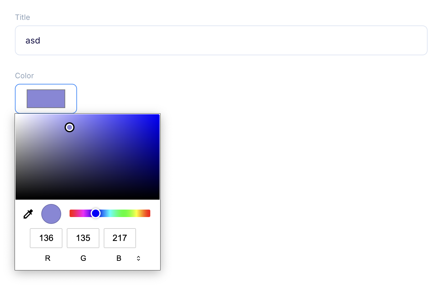 In our project, we needed a way for users to input colors into a Flotiq text field — without requiring them to be fluent in HTML or hex code sorcery. Let’s face it: not everyone is a developer or designer, and asking someone to type #FF5733 correctly is a recipe for frustration. So we thought: "What if picking a color was as easy as clicking a button?"