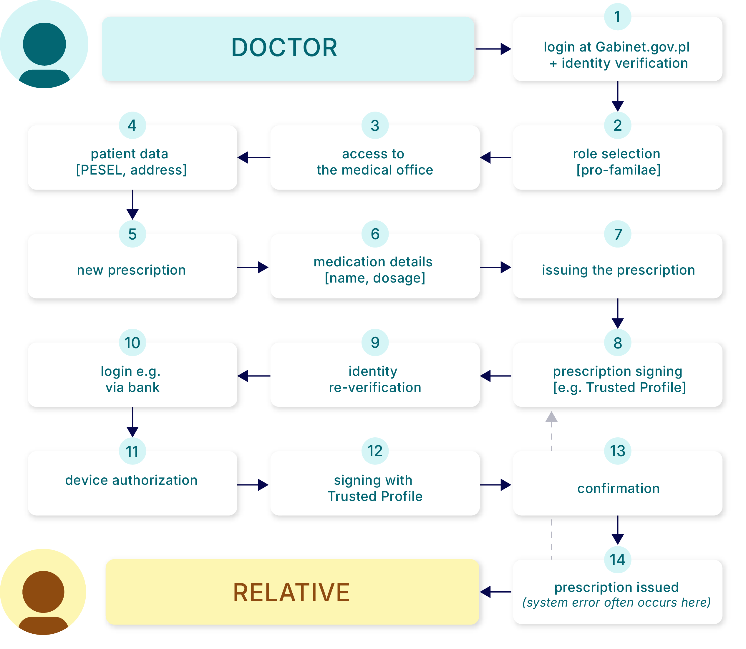 In Poland, issuing an e-prescription is a multi-step procedure - often requiring up to 14 actions, including repeated logins, SMS confirmations, and electronic signatures.