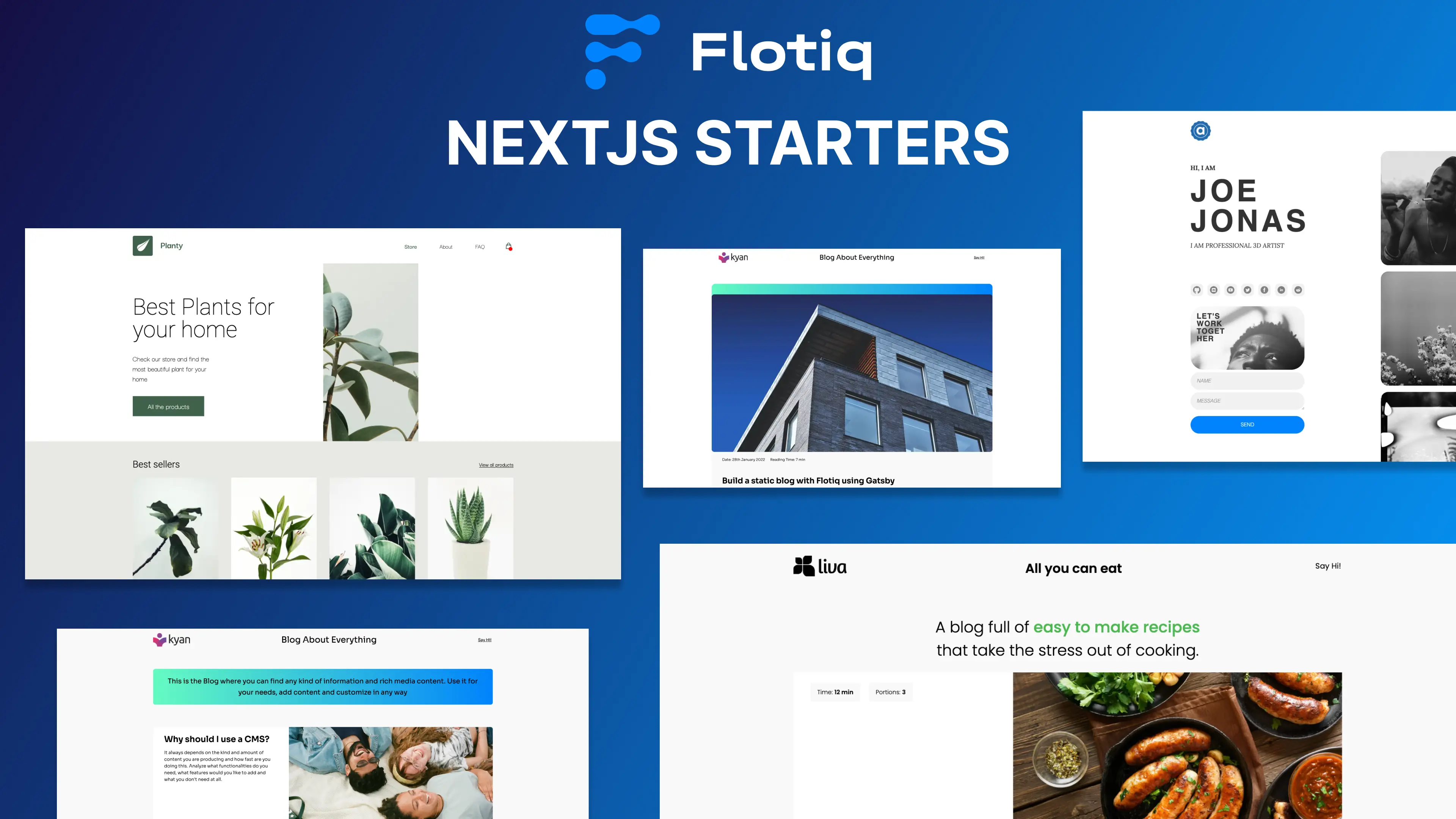 Flotiq start command CLI allows you initialize our Nextjs starters, not only Gatsby. Just run Flotiq start with our nextjs starter repository.