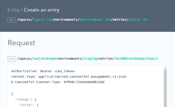 Contentful provides an extensive documentation page for its generic API, includes code examples, and has a playground for the content delivery API. For content management API, it offers generic examples.